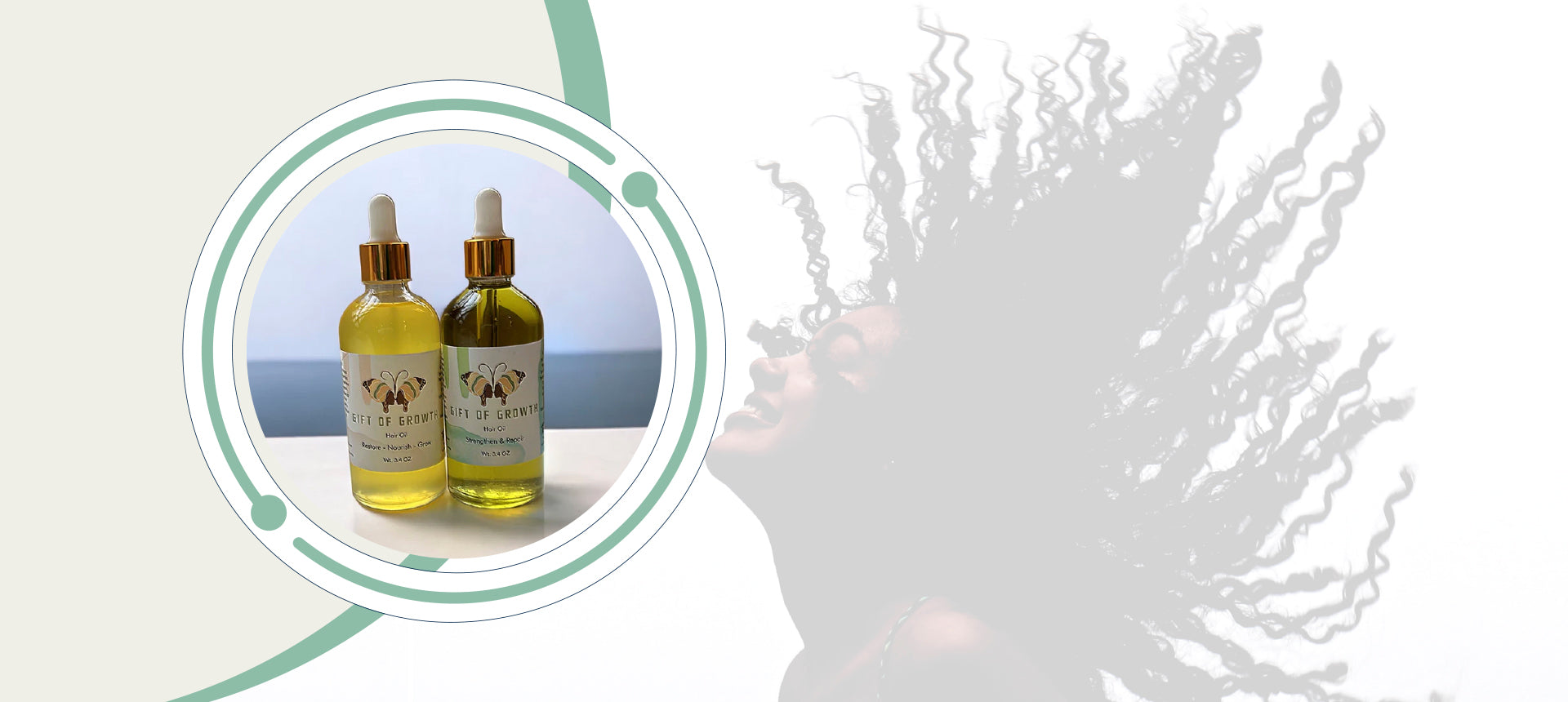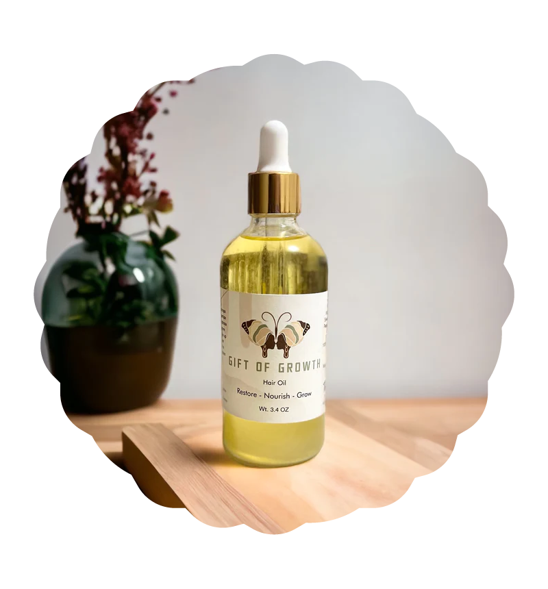 Gift of Growth's Restore, Nourish & Grow formula is inspired by West African natural ingredients, this blend of nourishing oils and 100% Ghanaian Shea Butter, promotes hydration, restoration & lasting growth. Handmade & organic.